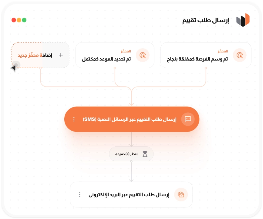 الأتمتة (Workflows Builder): أتمتة المهام والمتابعات والتذكيرات.